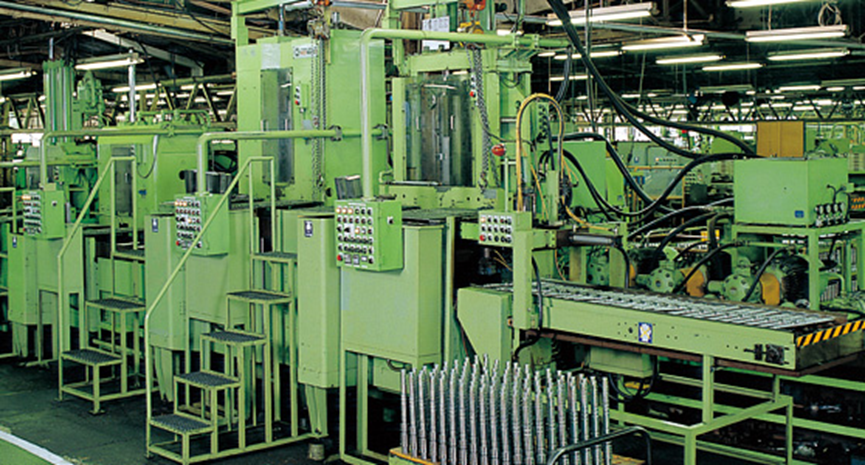 在滚轧工序中,通过以伺服马达式的转造盘为首的加工机,加工形成花键、螺纹部。通过精密、快速的自动系统有效地完成加工。
